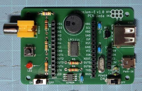EEPROMを搭載したIchigoJam互換基板「IchigoJam-E」を作りました。 1MbitのEEPROMを載せれば、ファイルが標準の0~3の4個に加えて、100~227の128個を保存できます。 回路図ボード図 基本的には通常のIchigoJam S2にEEPROMを増設しただけです。EEPROM・R5・R6…