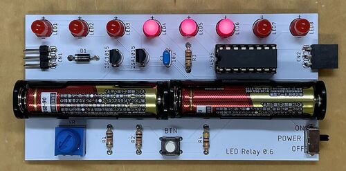ロジックIC回路で8個のLED点灯を横へリレーする基板を作ってみました。 紹介動画はこちら。 www.youtube.com ボタンを押すと、LEDが光って左から右へリレーします。 横に連結すると、続けてリレーできます。 遊び方 電源を入れると、8個のLEDが全部光って、…