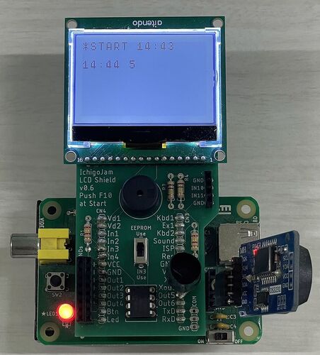 新しいセンターの玄関に、IchigoJam+赤外線人感センサーを使った簡易入館者カウンターを付けました。 LCDシールドに付けた液晶画面で、時刻や人数カウントを表示します。 時刻は、以前に作った時計モジュールと同じく、RTCモジュールから読み出します。 LCD…