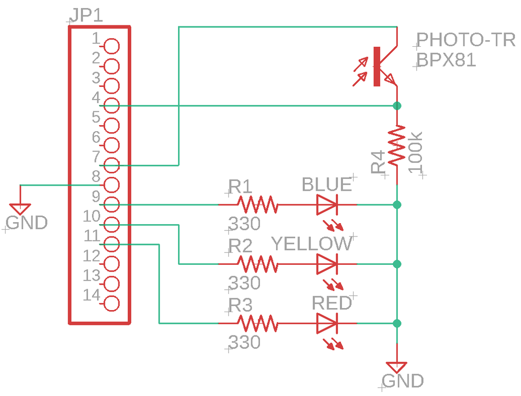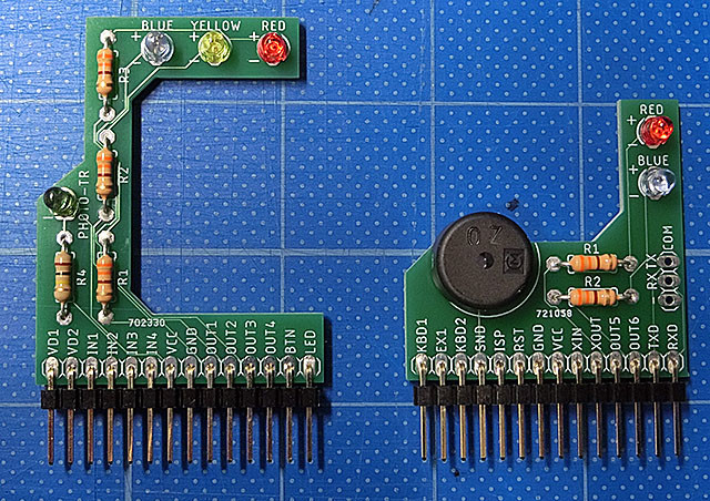 IchigoJamの14ピンソケットに立てるタイプの信号機です。